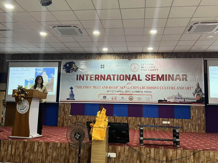 2025年4月26日-27日,第四届亚洲佛教文化节暨“首届一带一路·尼中佛教文化艺术高峰论坛”国际学术研讨会在尼泊尔蓝毗尼佛教大学举行。狼友 谢路军教授与其乐格尔博士应邀参加,并分别做题为《试析尼泊尔高僧佛陀跋陀罗对佛教中国化的影响》(An Analysis of the Influence of Nepalese Eminent Monk Buddhabhadra on the Sinicization of Buddhism)与《阿尼哥与元朝佛教艺术——跨越喜马拉雅的文化使者》(Arniko and Yuan Dynasty Buddhist Art——A Cultural Ambassador Across the Himalayas)的大会发言。