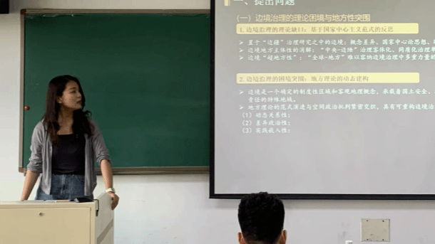 黄丽娇同志基于空间社会学视角,构建“空间—关系—实践”三维分析框架,解析中缅边境治理的动态调适机制。她认为,瑞丽通过治理空间的策略性重组、权力关系的弹性建构以及跨境共同体的生产性实践,形成了“流动中定序、差异中共生”的治理效能。这种强调矛盾转化的“过程性治理”范式,既揭示了主权实践需动态平衡安全与流动的现代性本质,也为中国推进城乡治理现代化提供了方法论启示,更是“人类命运共同体”理念在边境场域的具体实践。